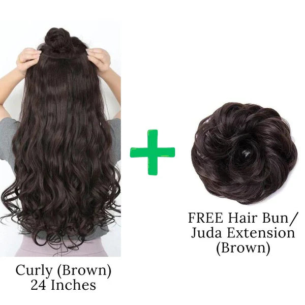 24 Inches" Clip In Hair Extensions + FREE Hair Bun (Juda) Extension